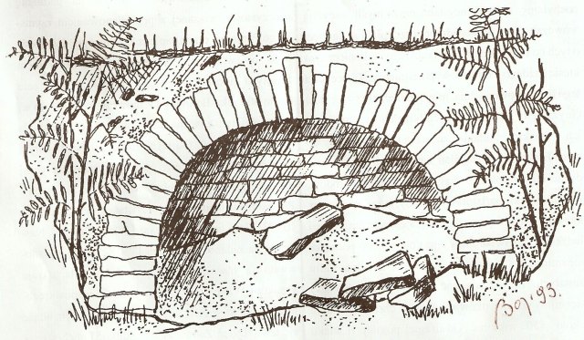 Odkopany w roku 1993 grobowiec o sklepieniu kolebkowym (rys. Ryszard Bogatek)